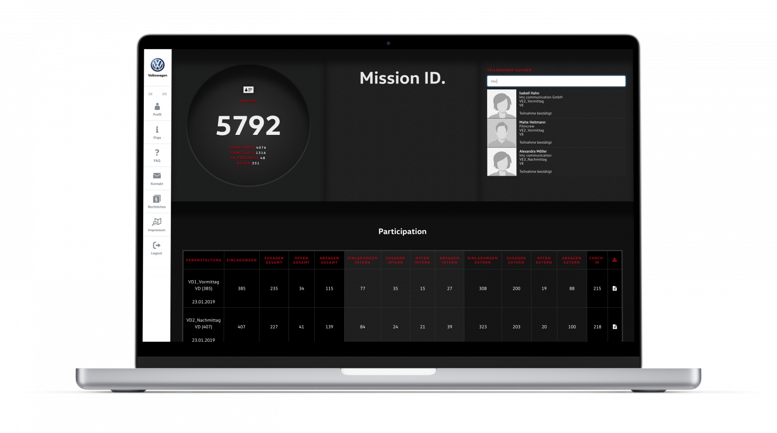 SCROLLAlles, was sich im Prozess-, Teilnehmer- und Projektmanagement sinnvoll digitalisieren lässt, digitalisieren wir. Um Ihnen und uns das Leben leichter zu machen. Und um uns auf das zu konzentrieren, was wir lieben: Die Konzeption, Planung und Umsetzung unvergesslicher Markenerlebnisse – analog und virtuell.